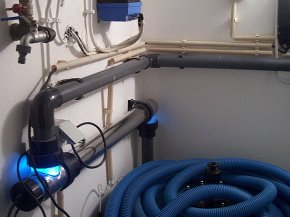 Vamos começar com o seu equipamento de piscina. Para que a sua água da piscina fique limpa nessecita de um tratamento agua, primeiro deve ser filtrada. A bomba de piscina é a fonte para fazer circular a água da piscina. A bomba extrai a água da piscina e direciona-a para o filtro. O filtro faz exatamente para o que é chamado. É uma armadilha para particulas e detritos. Depois que a água é filtrada é direcionado para o interior do UV. A água filtrada entra no sistema UV. A água flui através do comprimento da câmara de UV. É no interior da câmara que os microrganismos absorvem a luz UV poderosas. É essa a energia da luz que destrói ou inactiva o DNA de todas as algas e bactectérias etc. A maioria dos donos de piscina residencial usam alguma forma de cloro para desinfetar a água. Eles normalmente mantêm em 1 parte por milhão a 3 partes por milhão (ppm) de cloro. Com a adição de um sistema pode economizar até 70% no custo de cloro. Não seria encorajador saber que pode confiar no seu sistema UV quando o nível de cloro cai abaixo de desinfetante dos niveis normais?